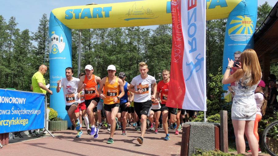 Zbliżała się godzina 12, zawodnicy powoli ustawiali się na linii startu. Pogoda przez moment ulżyła biegaczom, słońce ukryło się za małymi chmurami, a powietrze ruszył słaby wiatr. Ustawiłem się za kolegami, których zamierzałem pilnować na trasie. Moja kategoria była dziś mocniej obsadzona. Zastanawiałem się, jak tygodniowy ciężki trening i niełatwa pogoda wpłyną na moje wyniki? Zaraz miała to ujawnić trasa biegowa. Trzy, dwa, jeden… wystrzał pistoletu hukowego uwolnił biegaczy, którzy z każdym krokiem zwiększali tempo. Na czele stawki niezawodna i wierna tej lokalnej imprezie ekipa zawodowców: Sylwek Lepiarz, Michał Karasiński, Konrad Sulik, Zbyszek Dulemba i jedyna w czołówce kobieta – Kinga Kacuga. Udział takich zawodników podnosi prestiż imprezy i pokazuje amatorom nowe poziomy możliwości biegowych.