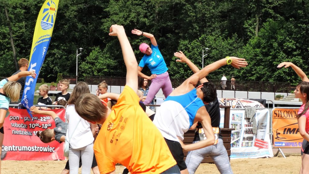 Tradycyjnie, przyjechałem na Gutwin wcześniej, aby zobaczyć start półmaratonu na raty, pokibicować znajomym biorącym udział na tym dystansie i zrobić kilka zdjęć. Pogoda jest trochę dziwna, ciepło nawet gorąco, mimo dość zachmurzonego nieba. Wczoraj mocno padało, więc będzie duszno i wilgotno na trasie. Obawiam się też o stan ścieżek i leśnych traktów. Tegoroczna edycja zawodów biegowych MosirGutwinRun bije rekordy popularności. Tylko na dystansie półmaratonu 9 lipca wystartowało aż 126 zawodników. Start biegu poprzedziła rozgrzewka prowadzona przez Izę Komar, trenerkę programu „Biegam, bo lubię”.