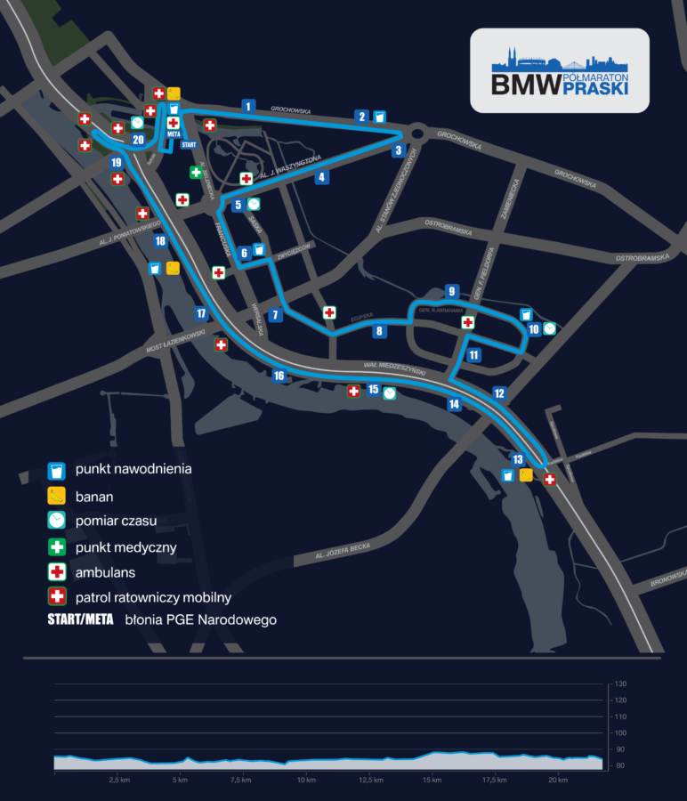 2 września 2017 roku odbyła się czwarta edycja BMW Półmaratonu Praskiego, którego trasa biegowa prowadzona jest prawobrzeżną częścią Warszawy, głównie po terenie dzielnicy Praga-Południe, a start i meta usytuowane są przy PGE Stadionie Narodowym. Start czwartej edycji tej popularnej imprezy biegowej odbył się, jak reklamują organizatorzy, w wieczornej odsłonie, czyli o godz. 20.30. Zdecydowałem się na udział w tej imprezie z dwóch powodów: po pierwsze termin zawodów, który dopasował się idealnie jako sprawdzian biegowy do mojego planu treningowego; po drugie – skusiła mnie bardzo szybka trasa półmaratonu.