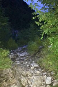 Wracam do moich towarzyszy na trasie. Niestety, może po 15 minutach wspomniani turyści zeszli ze szlaku, w oddali było widać kilka oświetlonych namiotów rozbitych na małej polance. Zostałem sam na trasie, zrobiło się cicho, przyspieszyłem kroku. Po 20 minutach było już na tyle jasno, że mogłem schować telefon latarkę. Szlak skręcał w lewo, przecinając wyschnięte